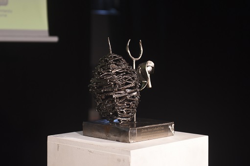 Escultura del artista Kiko Urrusti entregada a la galardonada.