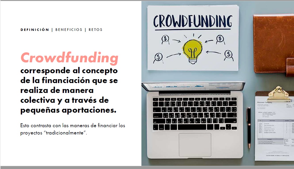 Como comenzó presentando Mauricio O’Brien, el crowdfunding es “una herramienta dentro de esta caja de herramientas”. Lo primero más importante es saber qué es el crowdfunding, que corresponde al concepto de la financiación que se realiza de manera colectiva a través de pequeñas aportaciones, lo que contrasta con las maneras “tradicionales” de financiar proyectos. Entre los beneficios que aporta esta solución es que, en primer lugar, sirve para validar nuestra idea ya que es la comunidad la que decide si la financia o no, no una entidad; es combinable con otras fuentes de financiaciónamplia públicos por la comunicación específica que se desarrolla en el proceso de la campaña; de esta manera se maximiza el impacto gracias a la comunidad.