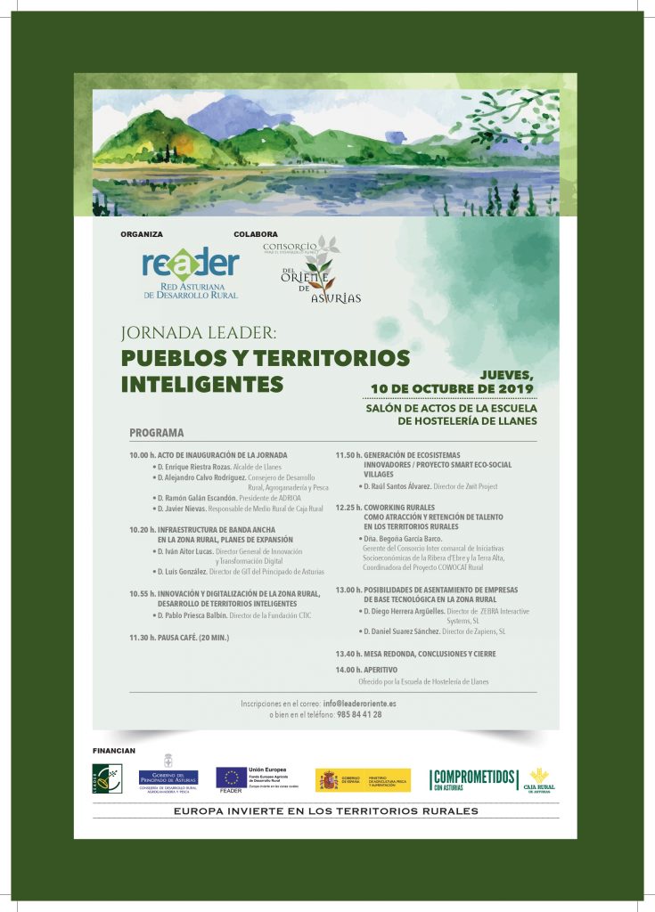 La Red Asturiana de Desarrollo Rural (READER) y la Asociación para el Desarrollo Rural Integral del Oriente de Asturias (ADRIOA) han organizado la Jornada LEADER 'Pueblos y territorios inteligentes' el próximo jueves 10 de octubre, a partir de las 10.00 horas de la mañana, en el salón del IES de Llanes. Este encuentro tiene como objetivo impulsar la transformación digital en el medio rural asturiano ante las oportunidades que plantean las nuevas tecnologías y la futura implantación del 5G para el desarrollo de los territorios rurales.
