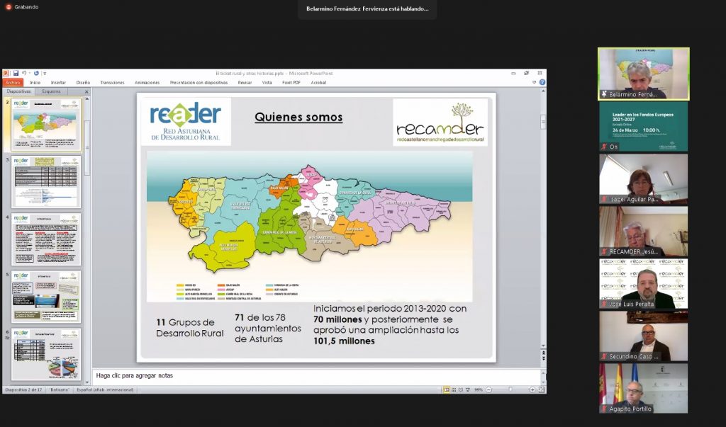 El Ticket Rural del Principado de Asturias ha conquistado a los Grupos de Acción Local de la geografía nacional. Así se puso de manifiesto hoy, durante la Jornada LEADER en los Fondos Europeos 2021-2027 que organizó la Red Castellano Manchega de Desarrollo Rural (RECAMDER), y en la que el presidente de la Red Asturiana de Desarrollo Rural (READER), Belarmino Fernández Fervienza, explicó el funcionamiento de esta ayuda económica dirigida a desempleados y desempleadas que deseen trabajar y vivir en el medio rural asturiano. Tal como informó Fernández Fervienza, se trata de una subvención de 35.000 euros “sin vinculo a ningún gasto e inversión, sino exclusivamente al mantenimiento de la actividad empresarial”. Desde su implantación en el Principado, ya son 370 beneficiarios y beneficiarias a los que se les ha concedido esta ayuda de la que están excluidas las actividades agrícolas y ganaderas. Cabe añadir que el importe del Ticket rural comenzó con 25.000 euros y desde el año 2020 se incrementó hasta alcanzar los 35.000 euros que ahora se abonan en tres anualidades.
