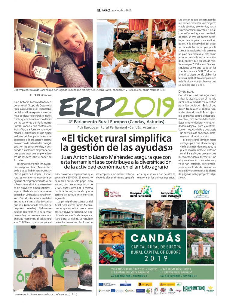 El periódico El Faro, que cubre la comarca de Carreño y Gozón, realizó con motivo del ERP una edición especial en la que uno de sus reportajes se centraba en El Ticket Rural y que puedes descargarte: