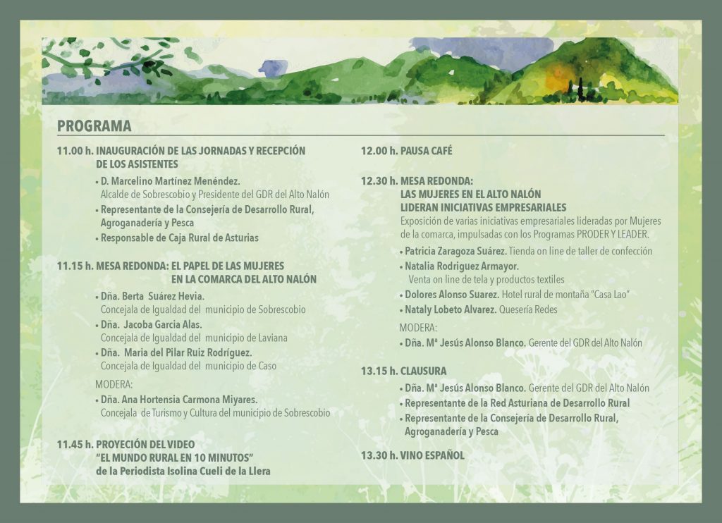 Las mujeres como emprendedoras dentro del programa LEADER es el tema central de la jornada del Grupo de Desarrollo Rural (GDR) Alto Nalón que tiene lugar hoy martes 12 de noviembre en el Centro Cultural Vicente Álvarez González de Rioseco (Sobrescobio) y que se desarrollará entre las 11.00 horas y las 13.30 horas.