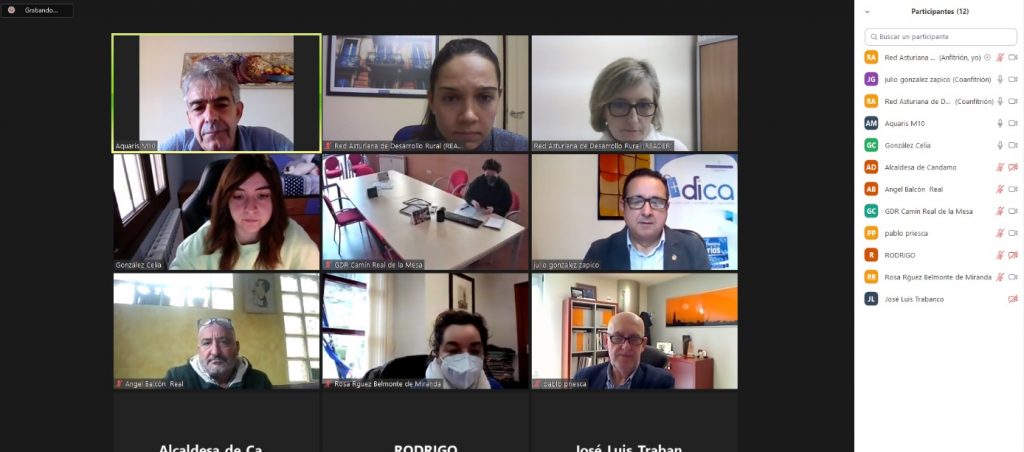 A diferencia de la comarca del Alto Nalón, donde la reunión fue presencial dado que no hubo más de cuatro asistentes tal como recomienda el protocolo COVID 19; en las comarcas de Bajo Nalón y Camín Real de la Mesa las reuniones se celebraron de forma telemática al superar la asistencia las cuatro personas permitidas en una misma sala. A la presentación en la comarca Camín Real de la Mesa, además del Director General de Comercio, Emprendedores y Economía Social, Julio González Zapico, el Director General del CTIC, Pablo Priesca, también asistieron el Presidente del GDR, Belarmino Fernández Fervienza, la Alcaldesa de Belmonte de Miranda, Rosa Rodríguez, el Alcalde de Quirós, Rodrigo Suárez, el Alcalde de Grado, José Luis Trabanco, la Alcaldesa de Candamo, Natalia González, la concejala del Ayuntamiento de Teverga, Celia González, el representante de la Asociación Siempre Grado, Manuel Ángel García, el representante de la Asociación Disfruta Teverga, Ángel Pérez y la Gerente del Grupo, Beatriz López.
