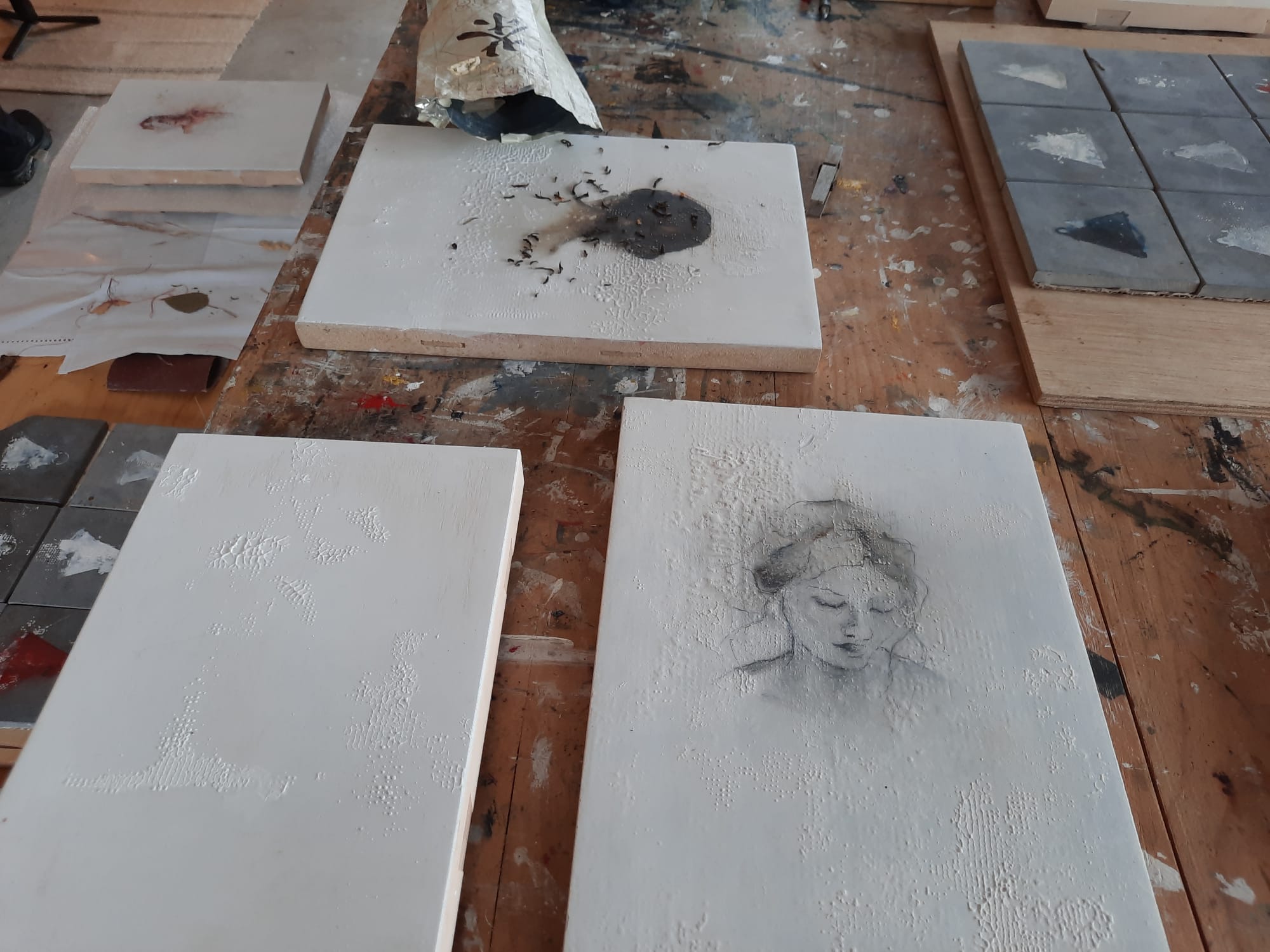Afirma que “viviendo una vez aquí me he encontrado a mí misma y lo que me interesa de mi pintura es el factor humano, enriqueciendo y configurando mi estilo de dibujo”, en el que hay muchas capas de veladuras, texturas, que crean esa especie de imágenes etéreas que nos trasladan a realidades que no vemos, pero que nos habitan. Hay algo de metáfora en su trabajo, no concebido como un mero adorno.